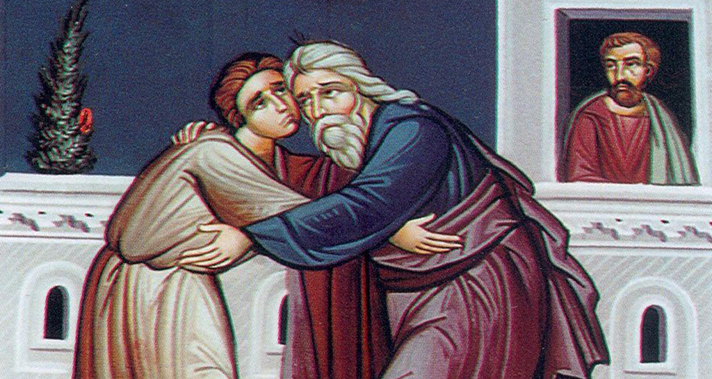 Και σηκώθηκε και πήγε στον Πατέρα του, προσθέσας έτσι στην καλήν βουλήν την αγαθή πράξη. Γιατί δεν πρέπει μονάχα να θέλουμε την ωφέλειαν, αλλά να δείχνουμε με τις πράξεις τις αγαθές ροπές. Ευρισκόμενος ακόμη σε απόσταση από τον τόπον, που ήταν ο Πατέρας του, αλλά πλησίον όμως στον πρέποντα τρόπον, και σηκώνοντας τα χέρια του και κτυπώντας το στήθος του, που υπήρξεν εργαστήριον πονηρών λογισμών, το δε πρόσωπόν του προσηλώνοντάς το στη γη, τα δε δάκρυα των οφθαλμών του προβάλλοντας ωσάν πρεσβευτές και προμελετώντας την απολογίαν του. Και μόλις έφθασεν, ανεβόησε με δυνατή φωνή και με κλαυθμόν λέγοντας. Πατέρα, αμάρτησα στον ουρανόν και ενώπιόν Σου. Αμάρτησα, το γνωρίζω Χριστέ Δέσποτα και Θεέ. Τις αμαρτίες μου Συ μόνον γνωρίζεις. Αμάρτησα, ελέησε ως Θεός και Δεσπότης. Δεν είμαι άξιος να βλέπω τον ουρανόν και να παρακαλώ Σε τον Αγαθόν μου Δεσπότην, όπως είμαι γεμάτος από μεγάλα και απαίσια εγκλήματα. Δεν υπάρχει αριθμός των αμαρτιών μου. Ελέησε ως Αγαθός Θεός, που είσαι πάντοτε, ότι δεν είμαι άξιος να λέγομαι υιός Σου. Δέξαι με σαν ένα δούλον Σου.